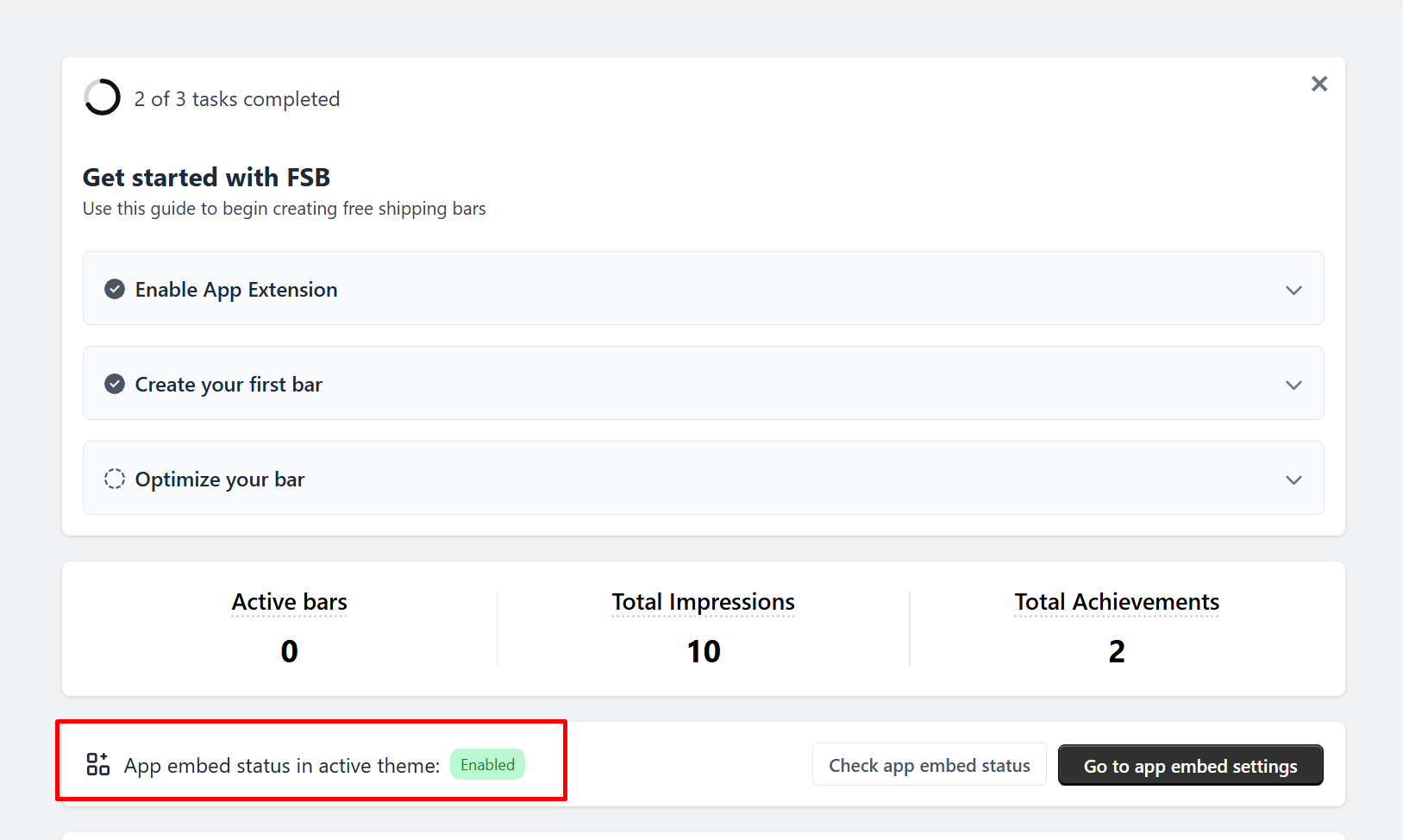 Enabling the Free Shipping Bar app embed on your Shopify Online Store 2.0 theme is highly recommended. Here’s why: