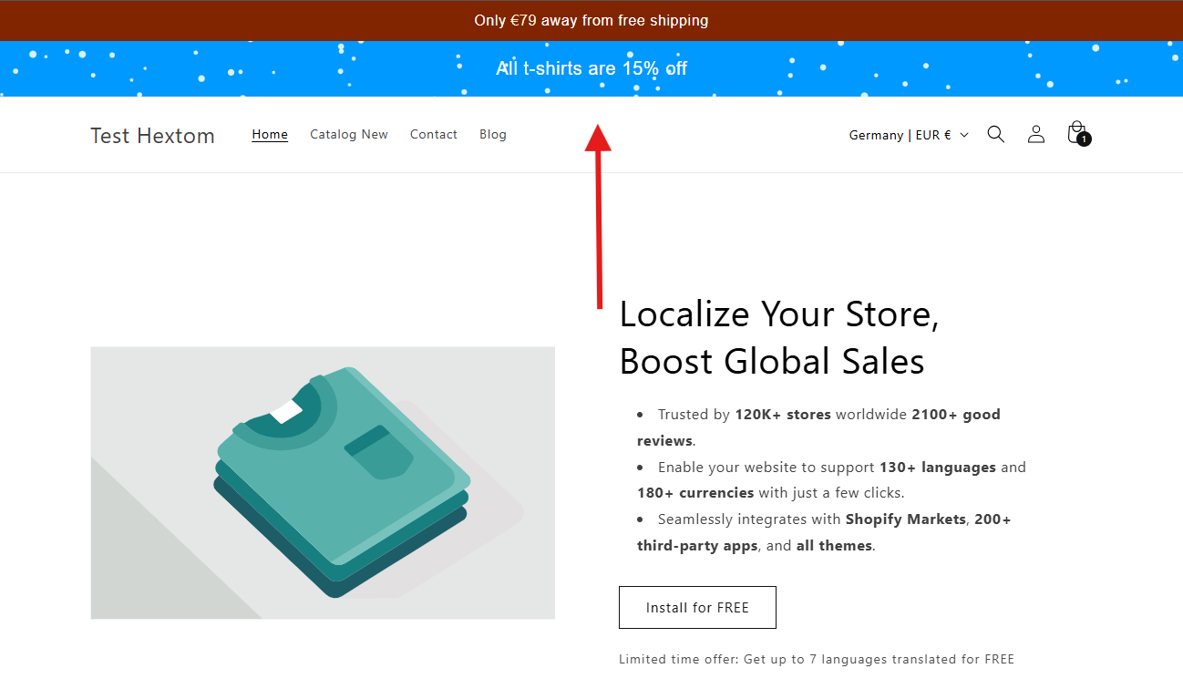 By default, our bar apps are designed for easy setup with no coding required. However, this simplicity comes with one limitation: only one bar per app can be automatically positioned at the top of your store at a time.
