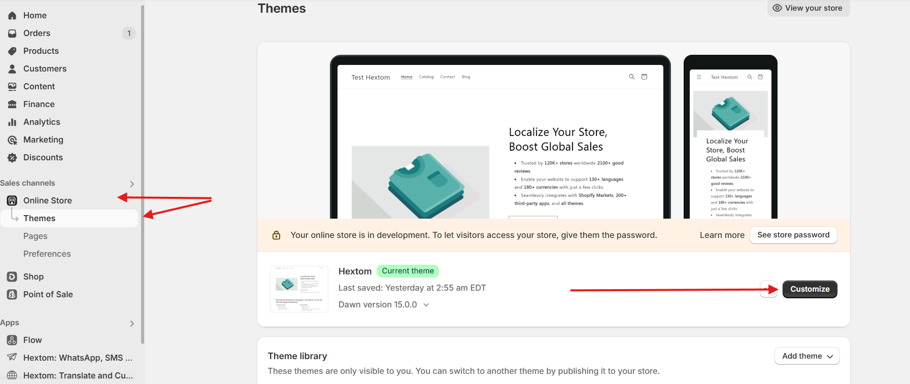 In your Shopify admin, go to Online Store > Themes. Then, click the three dots (•••) next to your theme and select Edit code.
