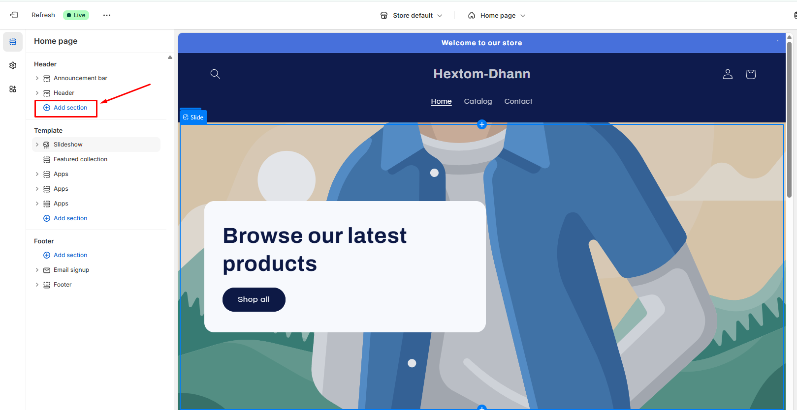 Please note that if you are not using a Shopify 2.0 theme, you might not be able to add a section to certain pages.
