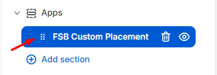 You may find yourself trying to drag the bar by grabbing the dotted tab for the FSB Custom Placement block. But that won't work. You need to grab and move the dotted tab of the Apps element.