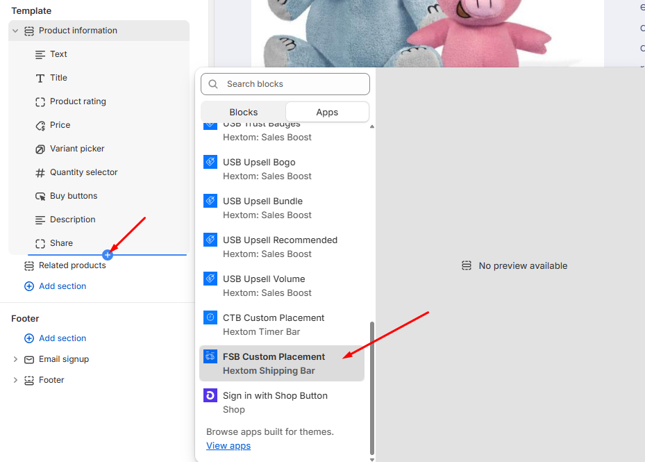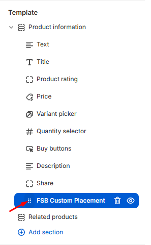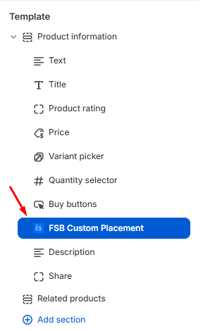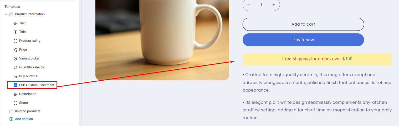 From here, you can choose to add the bar as a section or a custom liquid, just as in the above example. But you can also add the bar as part of the item description, placing the bar below the add to cart button. Here's how.