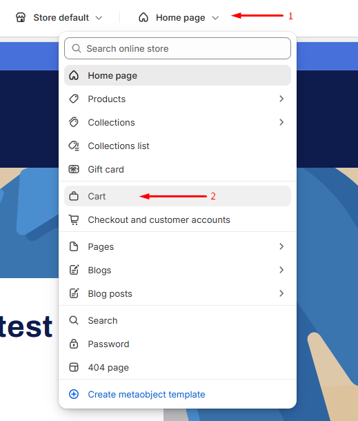 A similar approach can be used on the cart page. Using the top drop down, open the cart page layout: